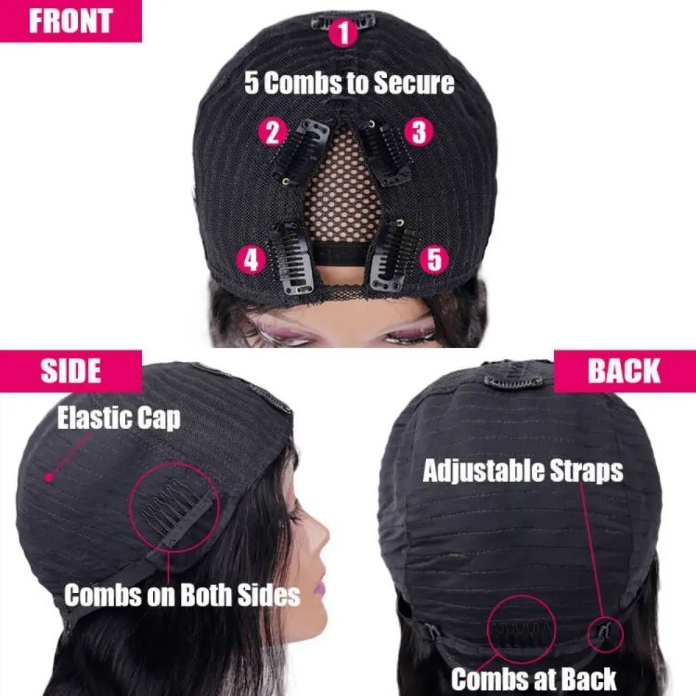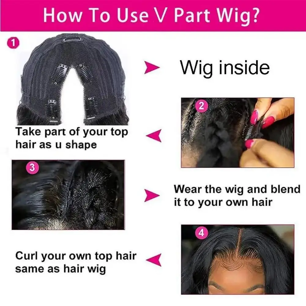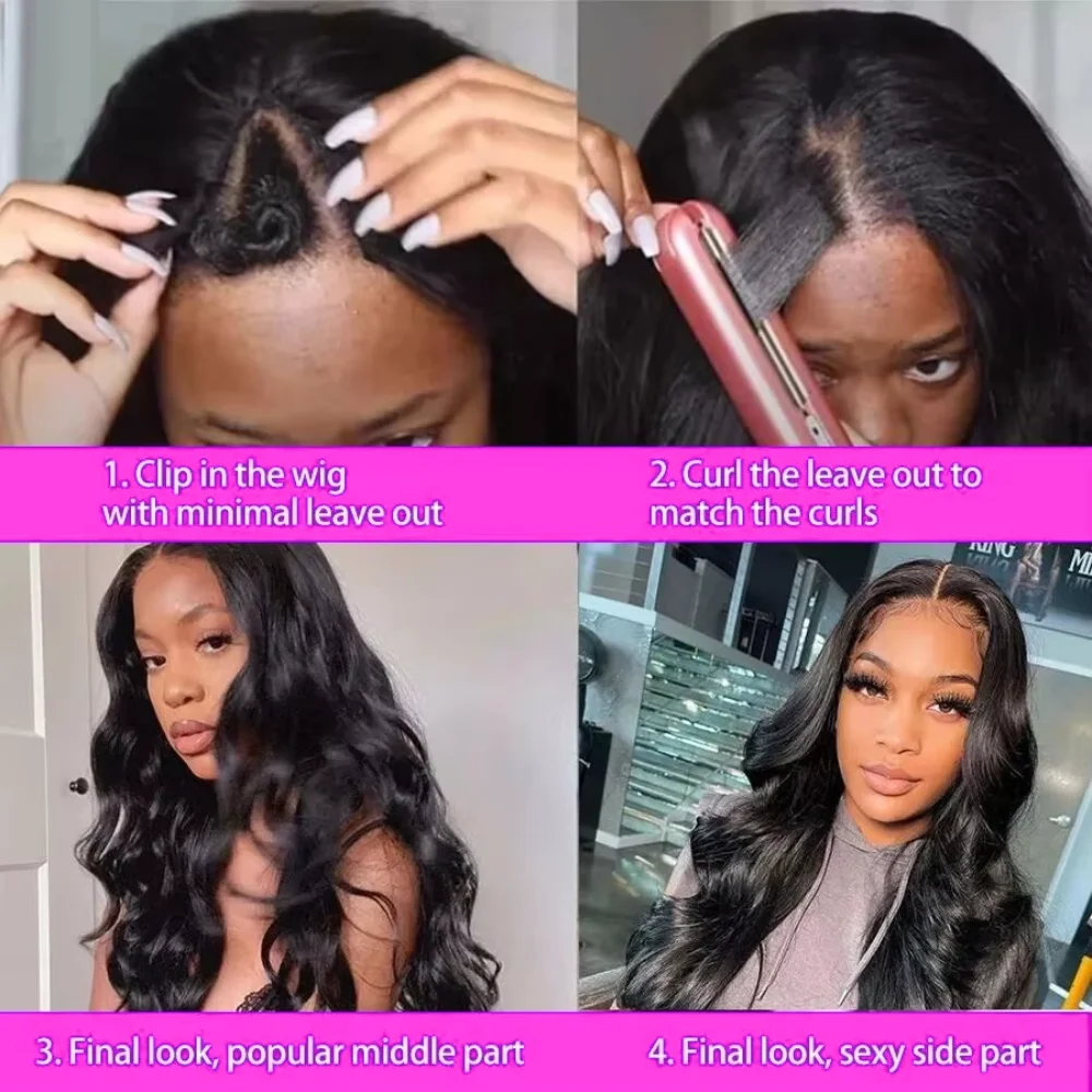16-32 Inch Brazilian Natural Black Body Wave Human Hair Wig V Part Wigs Body Wave Shape Hair V Part Human Hair Wigs For Women