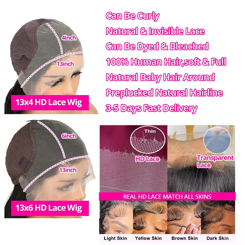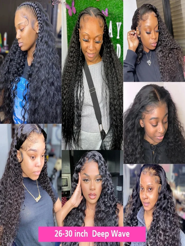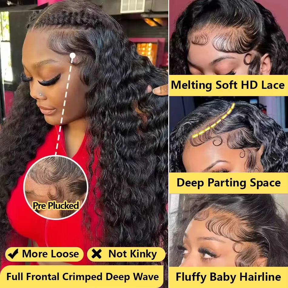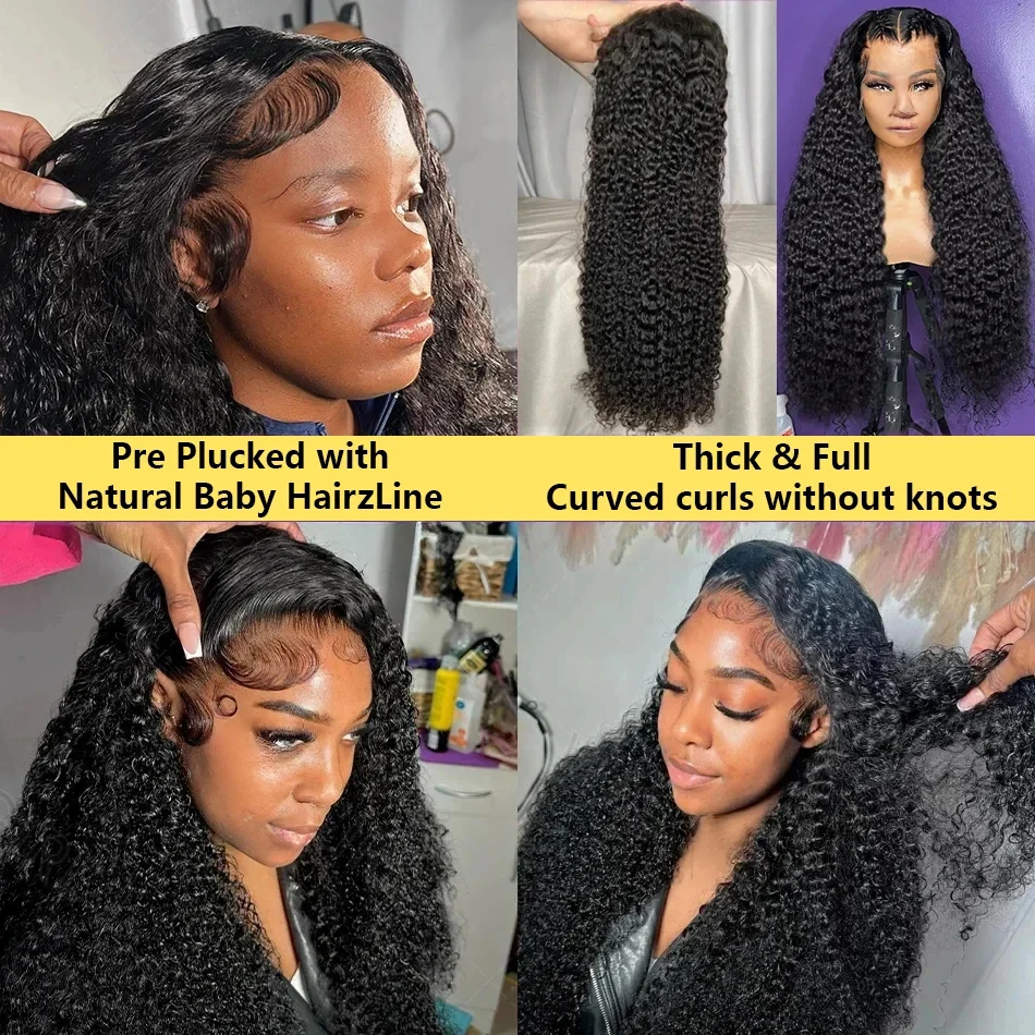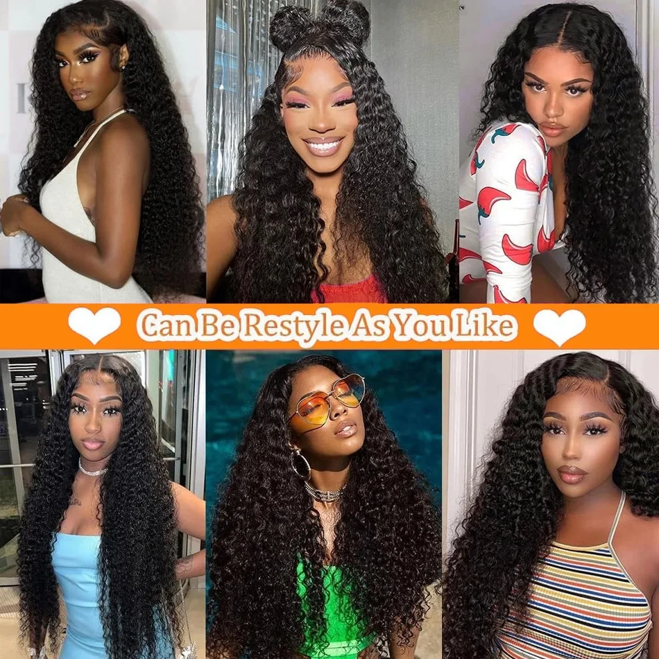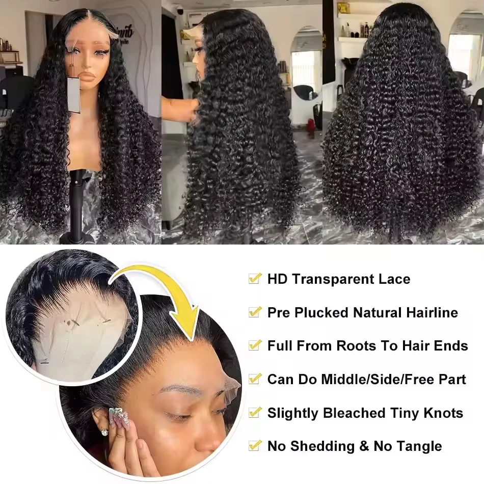 180 Density Curly 40Inch Deep Wave Frontal Wig Transparent 13x4 13x6 HD Lace Frontal Human Hair Wigs Curly Human Hair Lace