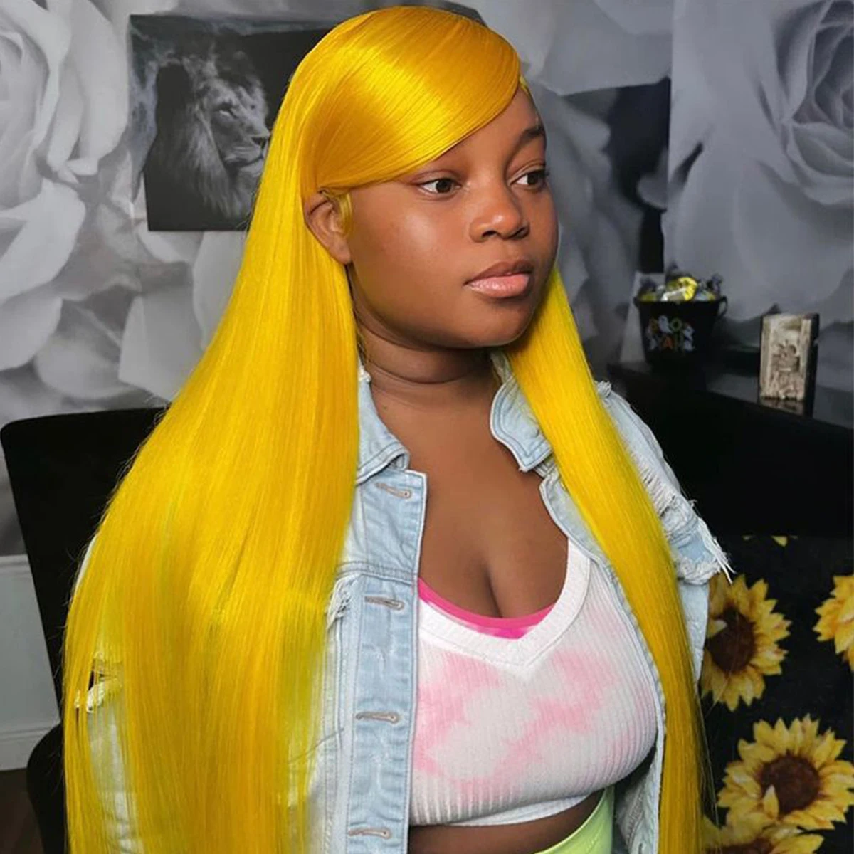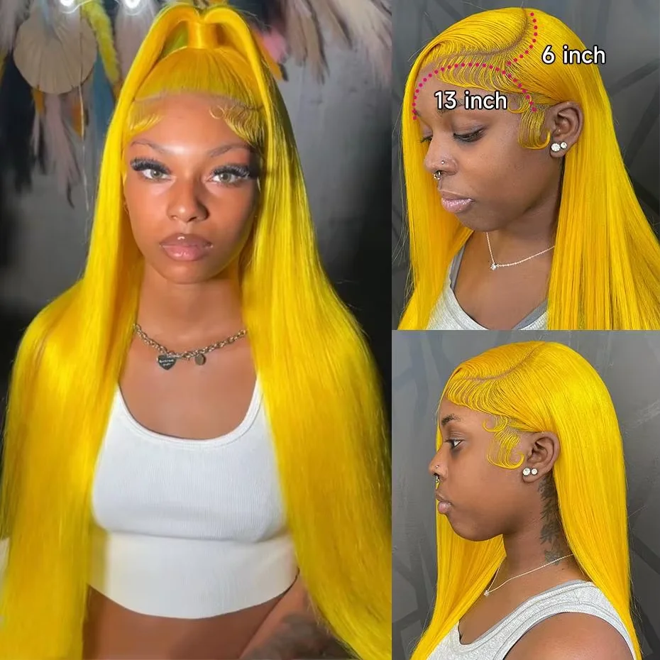 38 Inch Yellow Straight Wig 13x4 13x6 Transparent Lace Front Human Hair Wigs 200 Density Brazilian Remy Human Hair Long Lace Wig