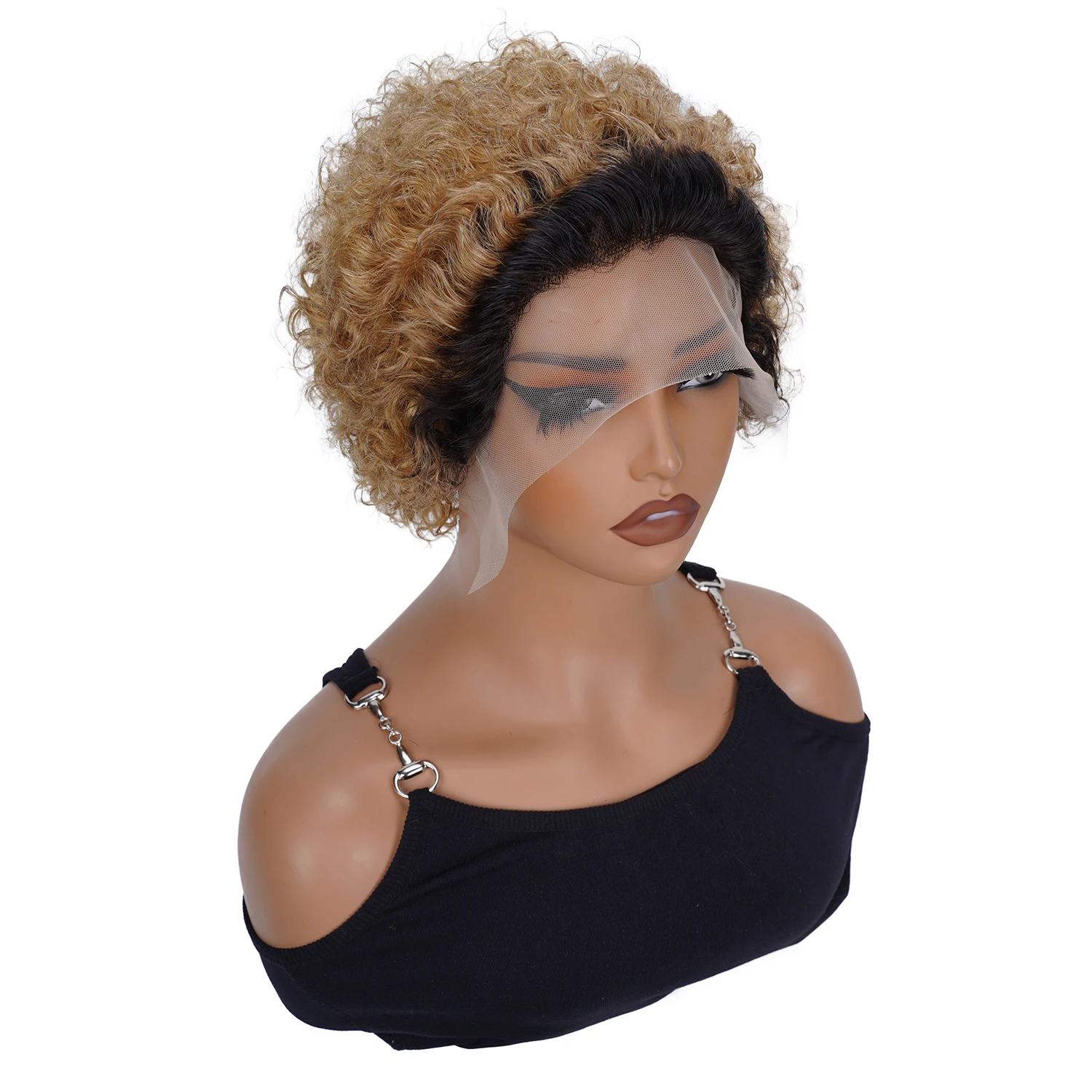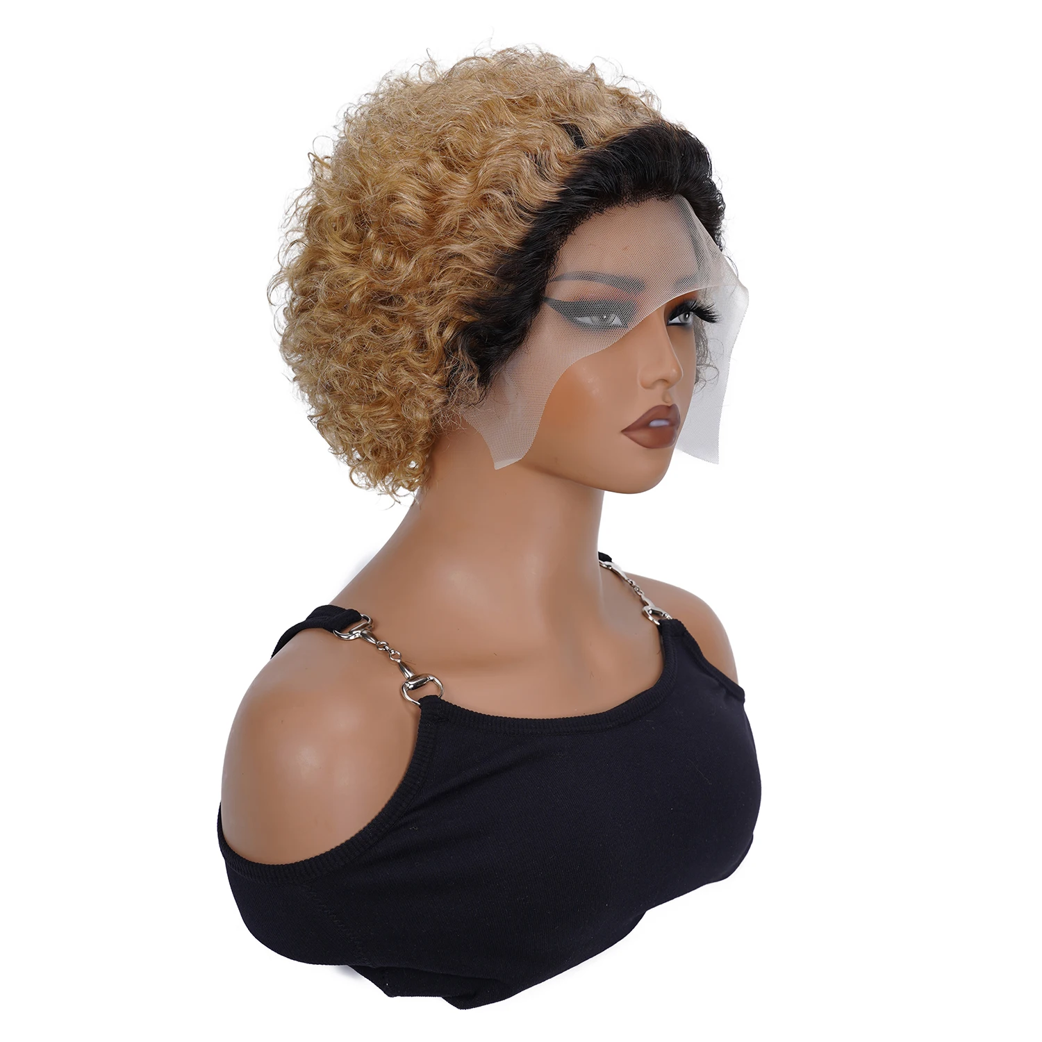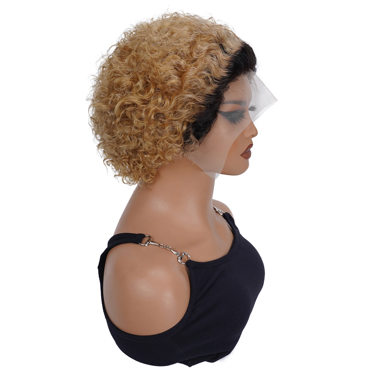 6inch Short Bob Curly Wig Pixie Cut Wig Human Hair Curly 13x1 Transparent Lace Wig 1b 27 Honey Blonde Colored Wigs For Women