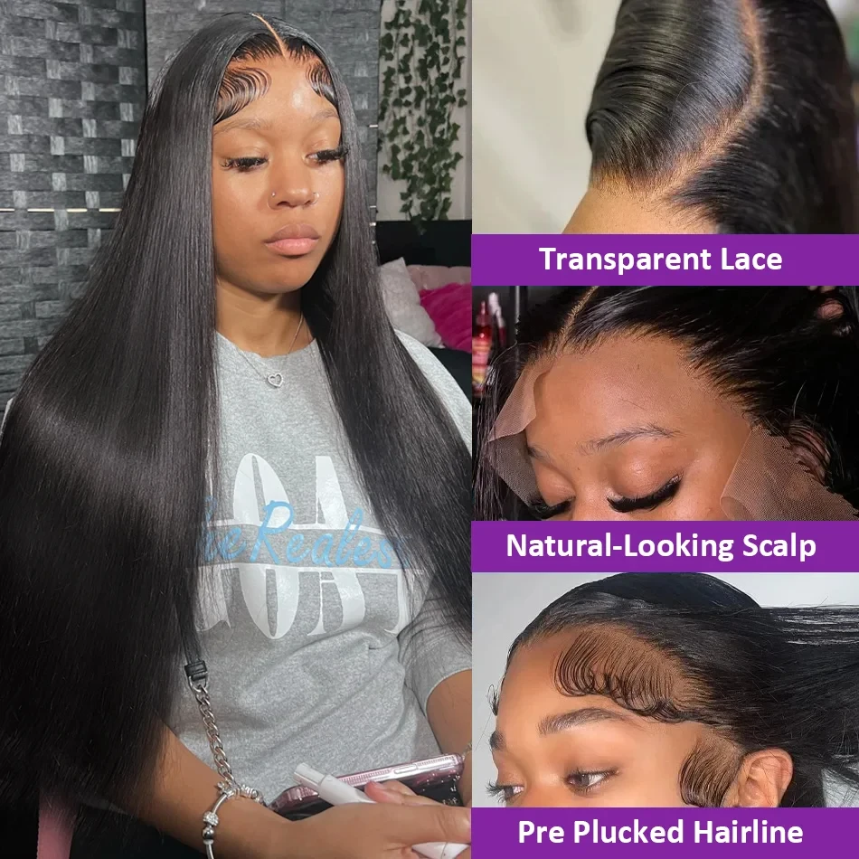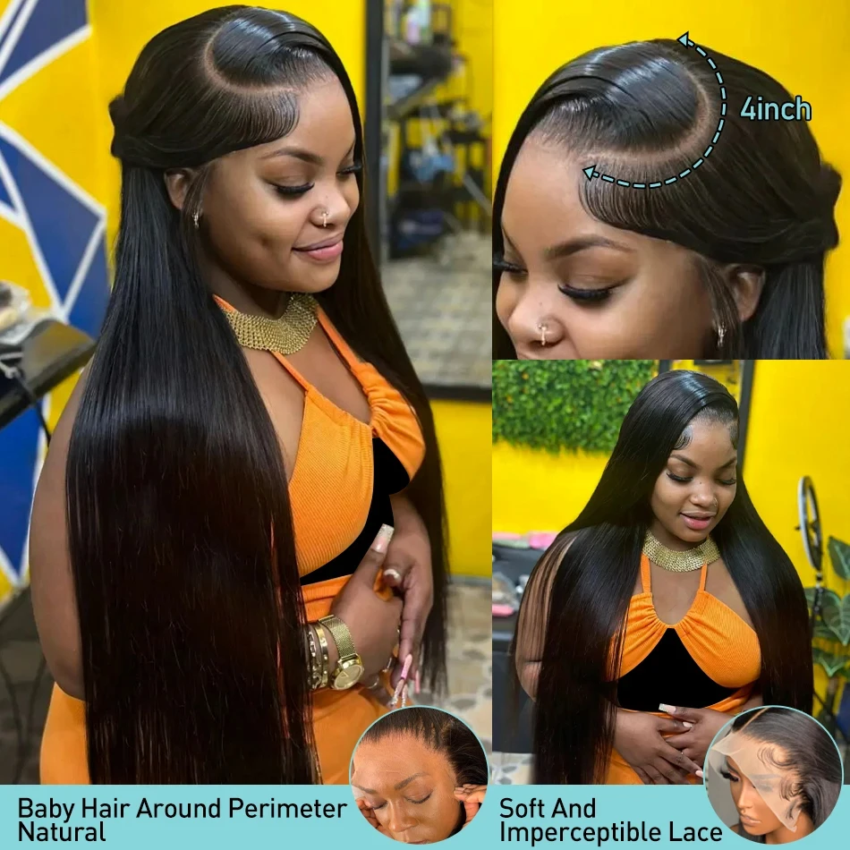 Mossily 40 Inch 220 Density Frontal Wig For Women Brazilian Wigs Human Hair 5x5 Bone Straight HD Transparent Lace Front Wigs